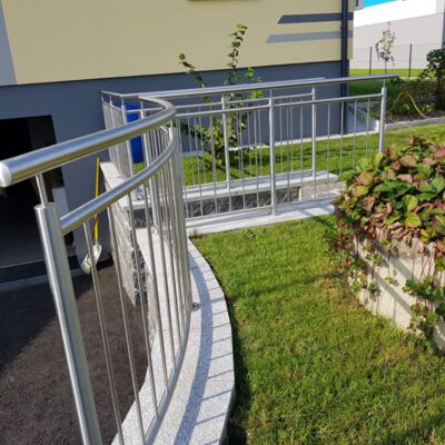 Ein Teil der Untergrundmauer für das Geländer ist hier in runder Form. Daher wurde auch ein Teil des Edelstahlgeländers…