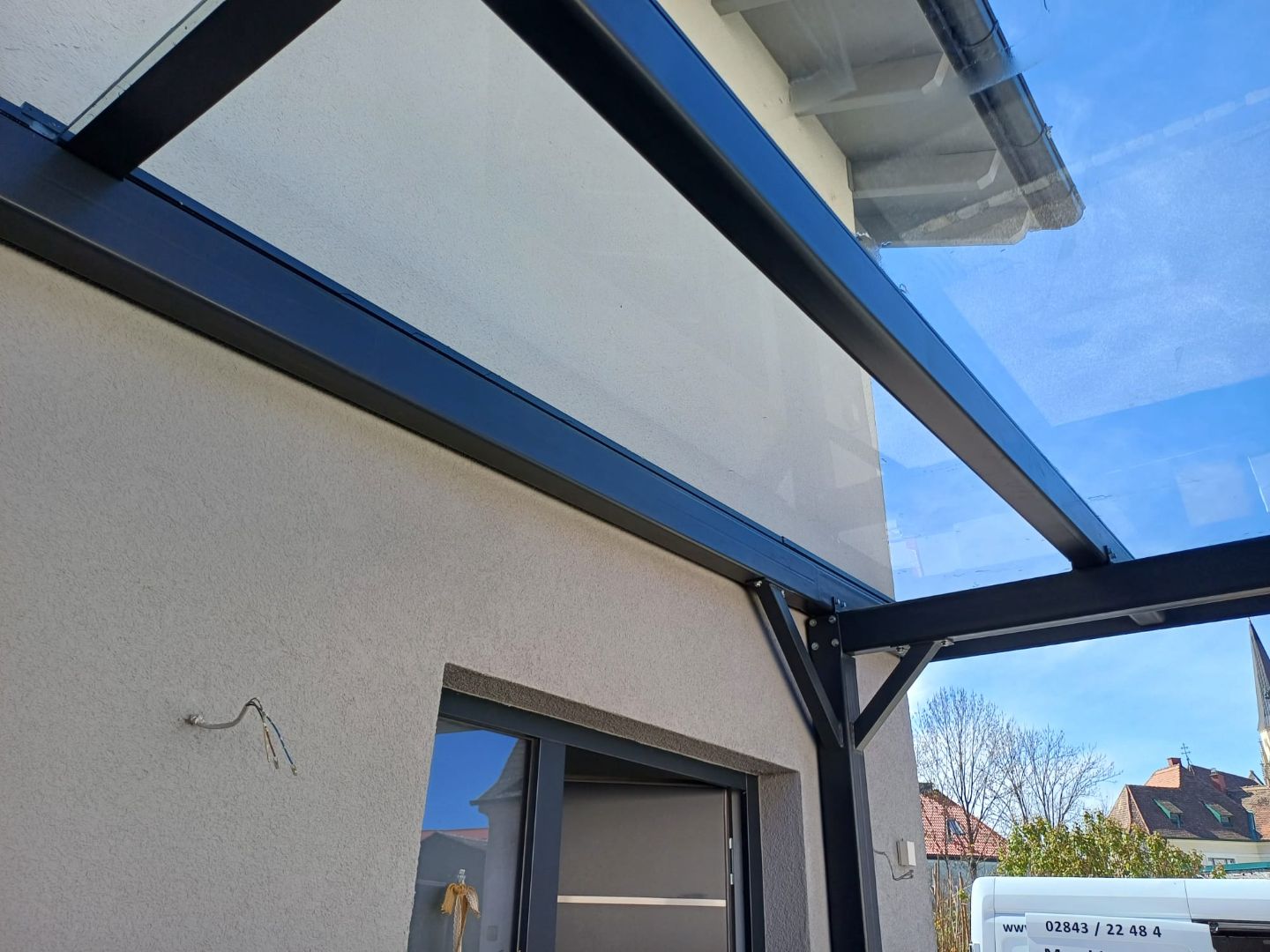 Statt einem typischen Vordach aus Glas kann man sich auch, wie hier, für ein Vordach aus Alu-Blech entscheiden. Der Vorteil von…
