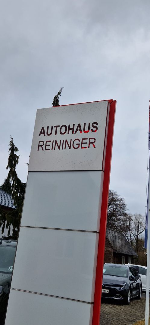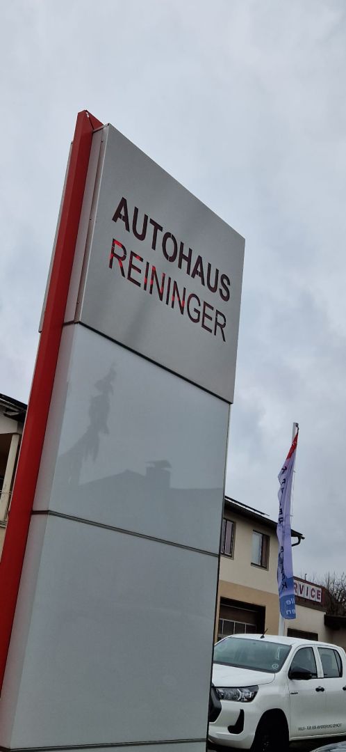 Für dieses Autohaus durften wir eine Werbetafel aus Edelstahlblech fertigen. Die Schrift wurde mittels Laser geschnitten und zur indirekten Beleuchtung färbig hinterlegt.
